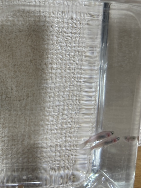 みゆきメダカのオス2匹を別容器に隔離しました。