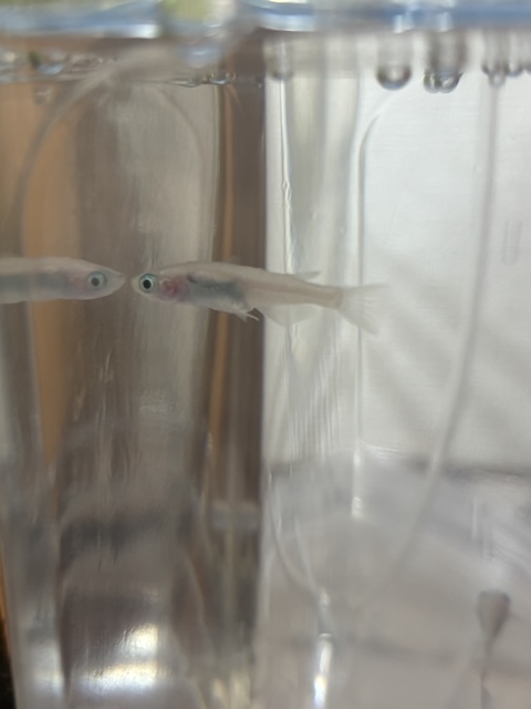 みゆきメダカのオス2匹は、他の個体より一回り大きく、