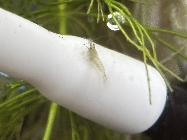 購入した5匹の中に、よく見ると生まれたばかりの稚エビが数匹紛れていたんです。