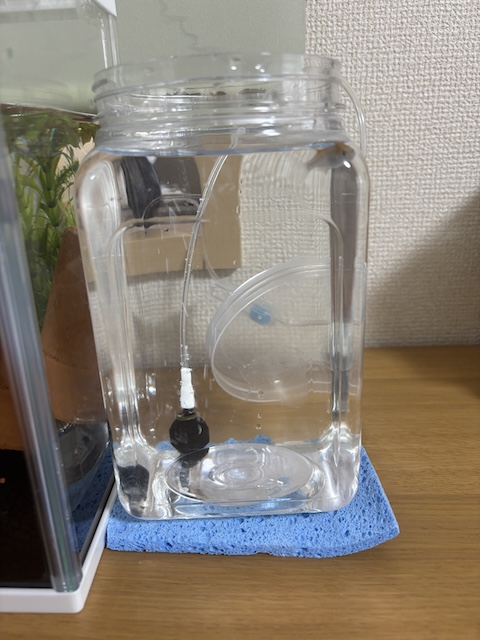 ⑤ 旧水槽の水を2Lほど入れる(種水)