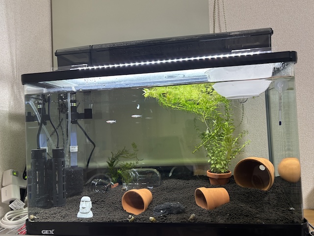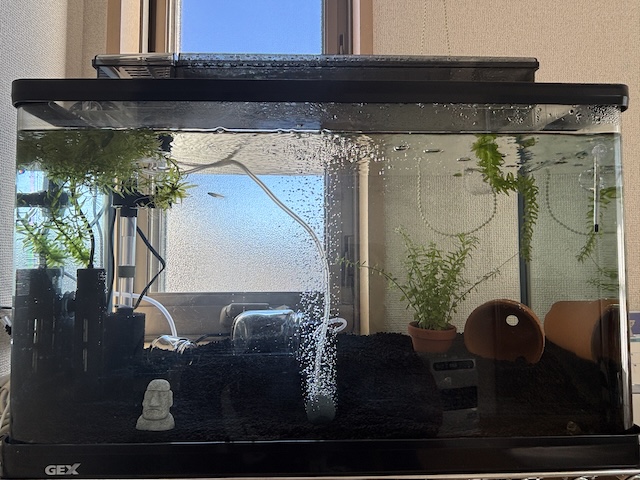 立ち上げ直後はハラハラするので、数日は餌を控えめにして水を汚さない努力もしました。